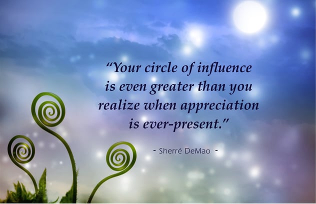 Take an MM&I Moment to reawaken to all that you have to be grateful for and that you feel blessed to have right now. Who has been a wonderful support to you in your life, your work, your business, your family, and your friendships? What resources do you now have at your disposal that you didn’t have a week ago, a month ago, a year ago, or a decade ago? What connections do you already have that you have not leveraged, explored, vetted, or validated for what they could do for you or someone else important to you? Chances are these few moments of reflection have helped you identify an amazing number of resources, options, and people who could continue to help you achieve even more. Your circle of influence is even greater than you realize when appreciation is ever-present.