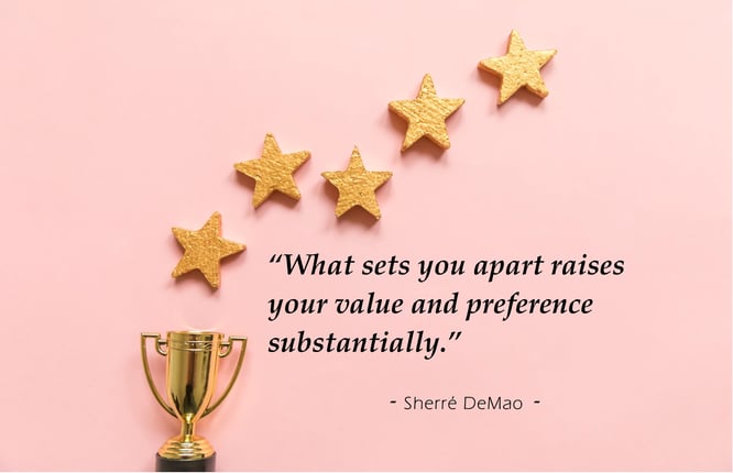 Take an MM&I Moment to awaken to better ways to position and elevate your value and worth in others’ eyes. Are you being viewed as a business or professional outstanding at what you do, or a business or professional in a sea of others offering the same thing? As a business owner, do you truly know what your ideal target market is willing to pay for in what you offer? As a professional or business owner, do you know without question how what you offer is exceptional above all others? Can you provide tangible results, return on investment, or desired or ideal outcomes that quantify the value you bring? Your ability to stand out and set yourself apart means you are also willing to take a stand in raising expectations to levels perhaps not considered before. Those seeking the ability to do and achieve more will pay more and appreciate more. Those seeking to excel beyond all others align with those already doing it. What sets you apart raises your value and preference substantially.